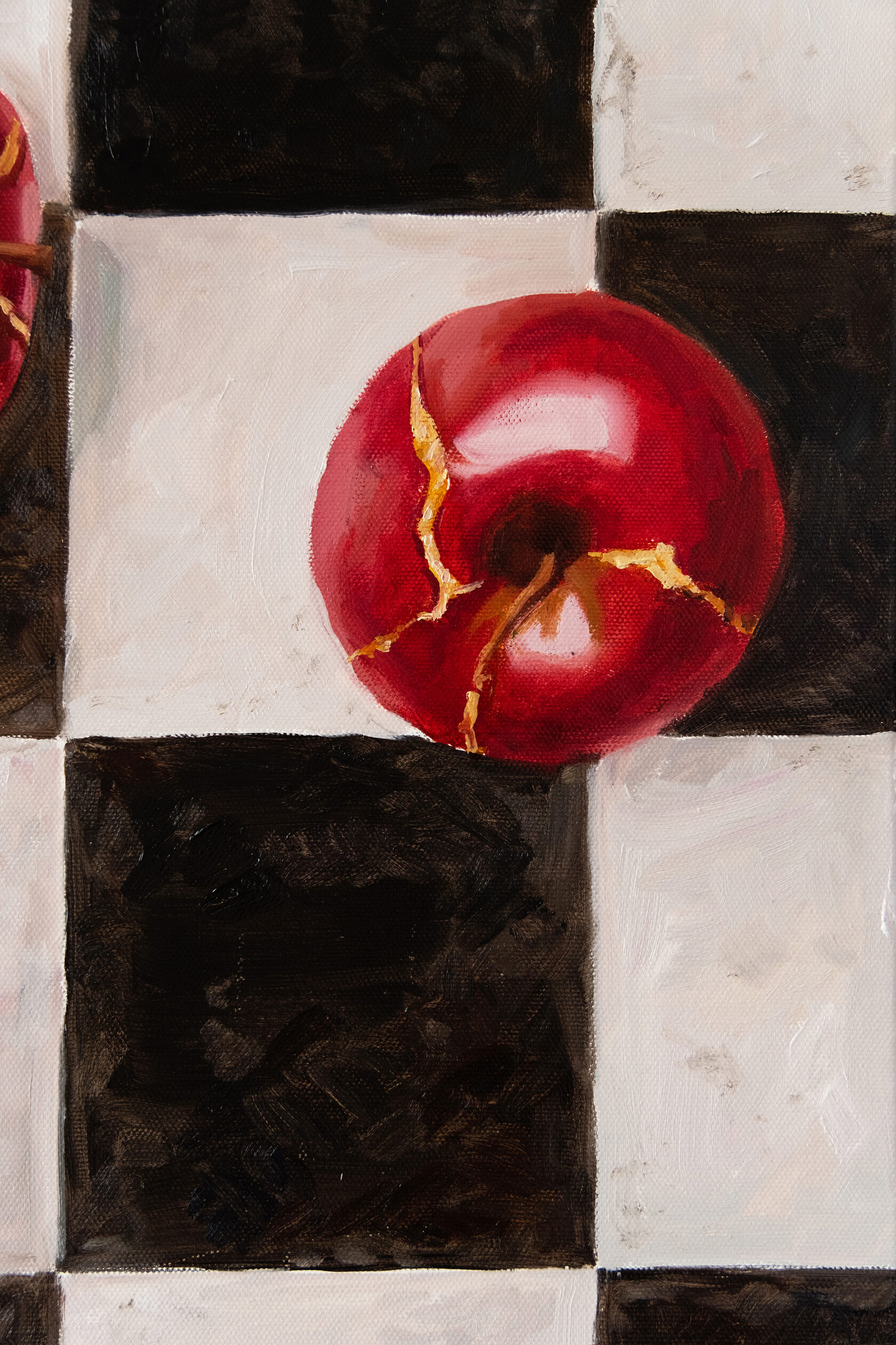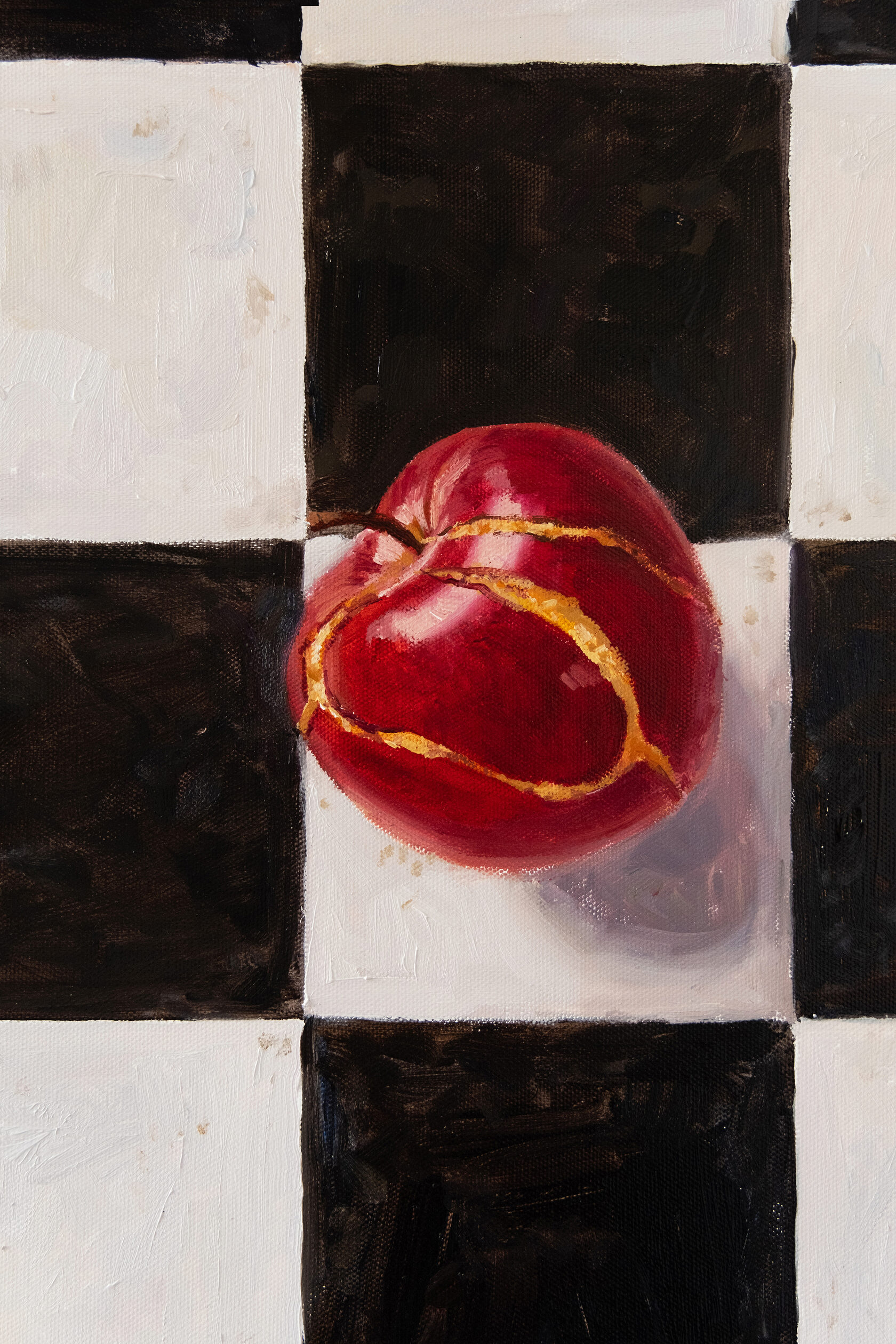 Life unfolds like a chess game — every move matters, every choice shapes the story. The apples, symbols of maturity and passion, lie scattered across the board, their golden cracks telling stories of experience and emotion. Inspired by kintsugi, they remind us that beauty often lives in our fractures. Our passions may fade or break apart, yet they remain the essence of what makes us truly alive.