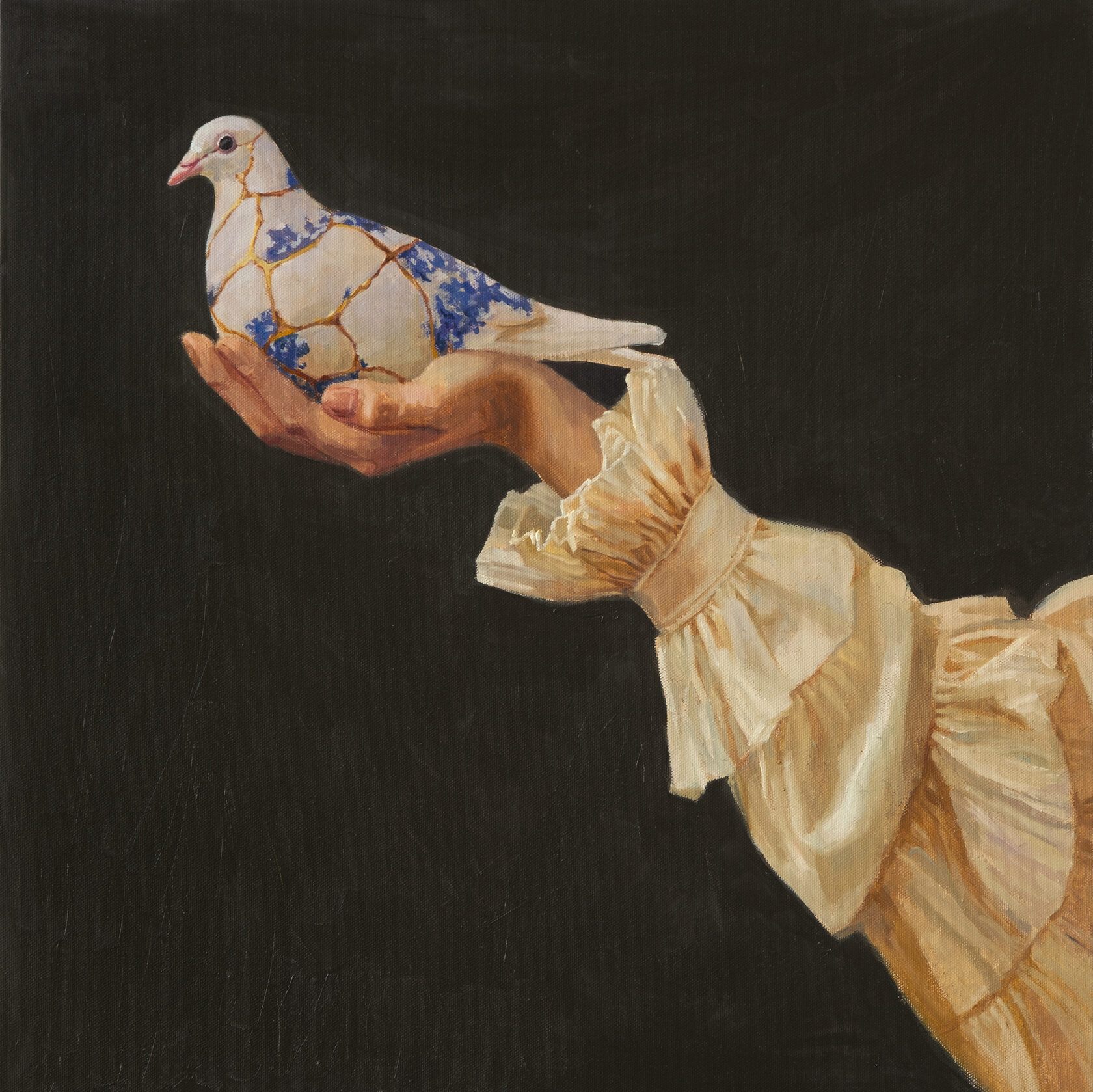 A painting from the series “Fragile World,” which I created under the influence of all the events unfolding in the world around us. It portrays a porcelain dove, a symbol of peace, that has been shattered and mended many times. Yet, it remains fragile, as the slightest wrong move could once again break it into hundreds of tiny pieces.